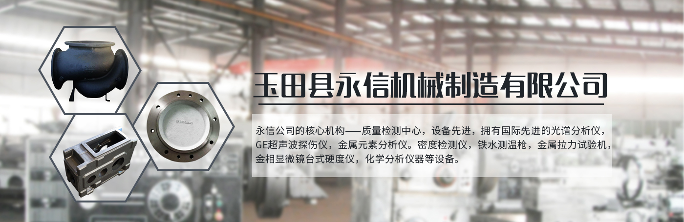 玉田縣永信機械制造有限公司總公司成立于2009年,注冊資金5000萬元人民幣,占地35畝,具備年產(chǎn)2萬噸減速機、閥體、電機座鑄件等的生產(chǎn)能力,是國家工信部批準的鑄造準入企業(yè)。公司是從事工程機械鑄件,機床鑄件生產(chǎn)和銷售的泵閥鑄件廠家,配備全自動生產(chǎn)設備和環(huán)保設施,加快綠色發(fā)展。公司以生產(chǎn)灰鑄鐵、球墨鑄鐵鑄、耐磨鑄鐵件、工程機械鑄件、機床鑄件為主。鑄造車間擁有自動和手工兩條造型生產(chǎn)線及液壓控制的覆膜砂制芯系統(tǒng)。鑄造過程含造型、電爐熔煉澆鑄、抖箱、噴丸拋光、打磨等工序。樹脂砂、覆膜砂、粘土砂造型生產(chǎn)工藝成熟穩(wěn)固,年產(chǎn)量超過2萬噸,其中,樹脂砂自動造型生產(chǎn)線,以批量大、標準高、誤差小的特點深得用戶信賴。樹脂砂造型生產(chǎn)模式以滿足異型和私人定制為特色,成為企業(yè)成長的重要組成部分。機械加工車間擁有3套加工中心、15臺數(shù)控車床及其它加工設備。永信公司的核心機構——質(zhì)量檢測中心,擁有光譜分析儀、GE超聲波探傷儀,金屬元素分析儀,密度測試儀,鐵水測溫槍、金屬拉力實驗機、金相顯微鏡、臺式硬度儀